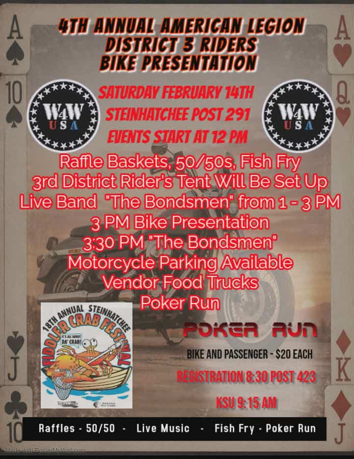 The 3rd District American Legion Riders are set to honor another veteran with wind therapy; all are invited to attend the presentation ceremony. This will be a first for us as we are going to be honoring two Veterans.