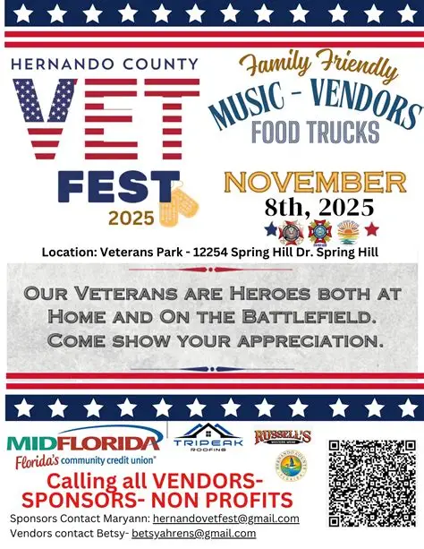 Nov 8 All Day Hernando County Vet Fest Veterans Park 12254 Spring Hill Dr, Spring Hill Event Details Get Directions
