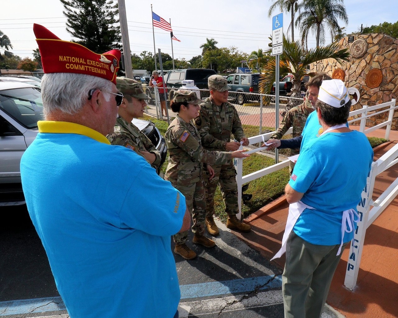 They served two bus loads this year, serving between 100-125. There were 20-30 volunteers, four of whom were in uniform.