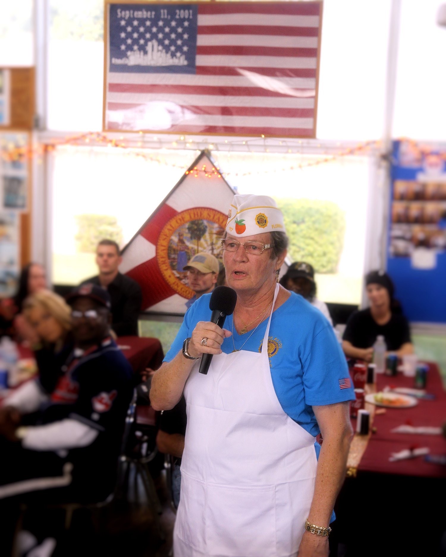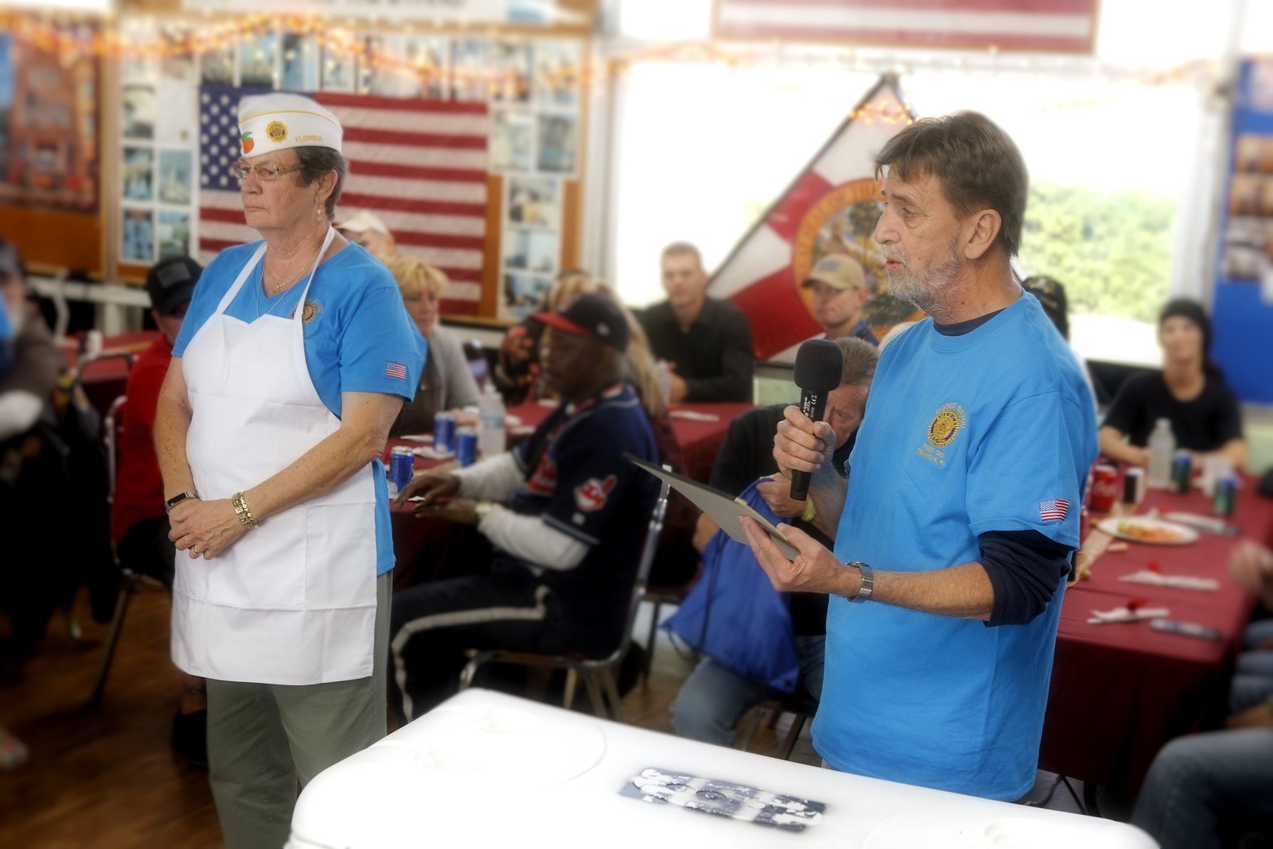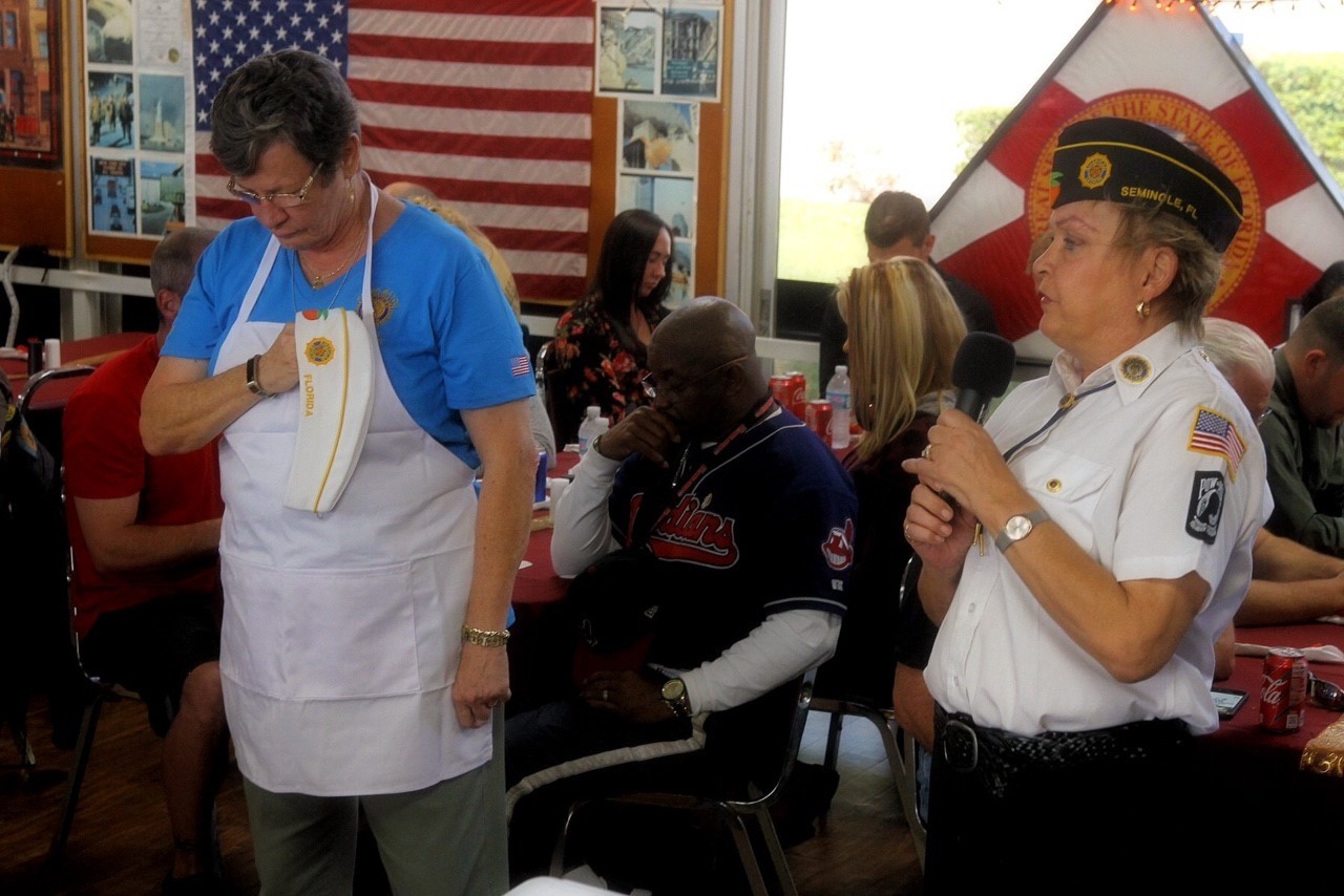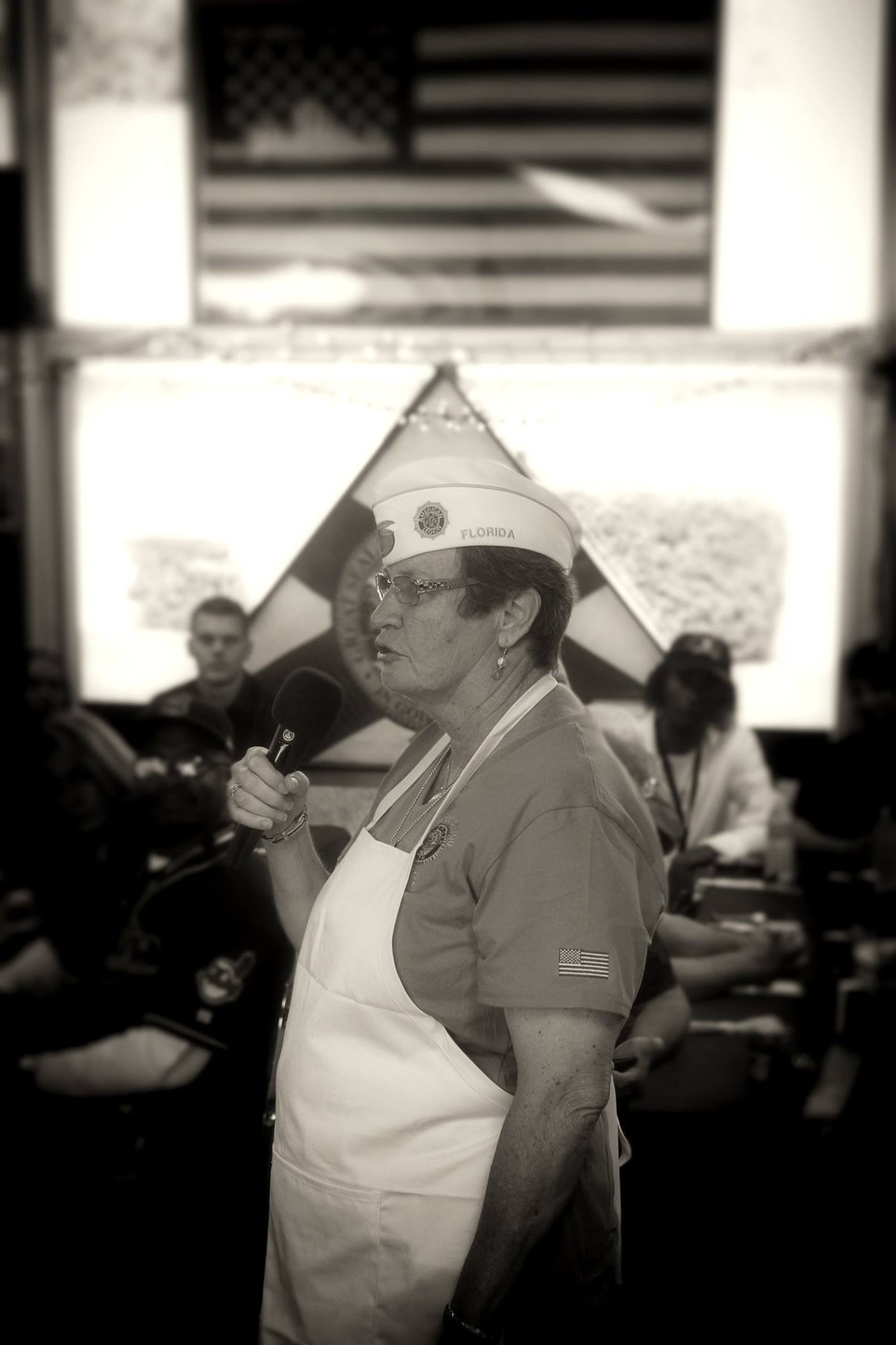 Each year Cross Bayou Post 252, in Seminole, invites the Department Commander to visit and help prepare and serve meals to patients from Bay Pines. Our Department Commander Dianne Boland, was happy to accept the invitation.
