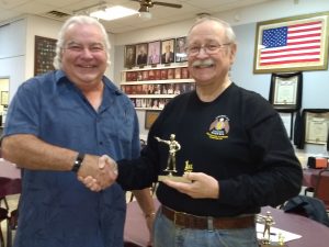 1st Place Trophy to Dan Roberts (L) by Jerry Ham, Match Director (R)
