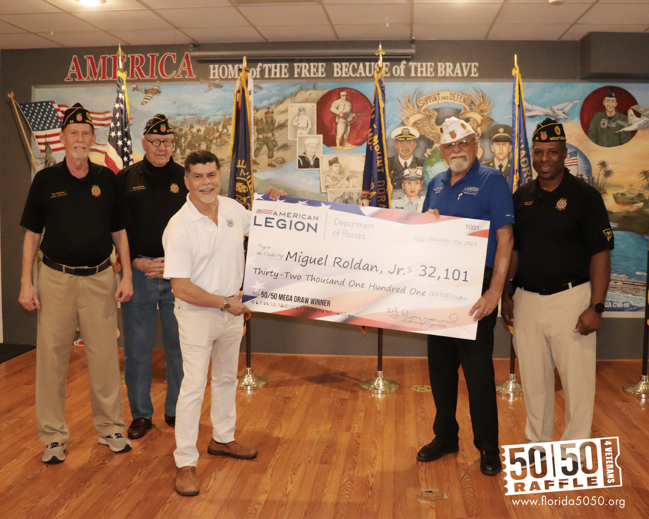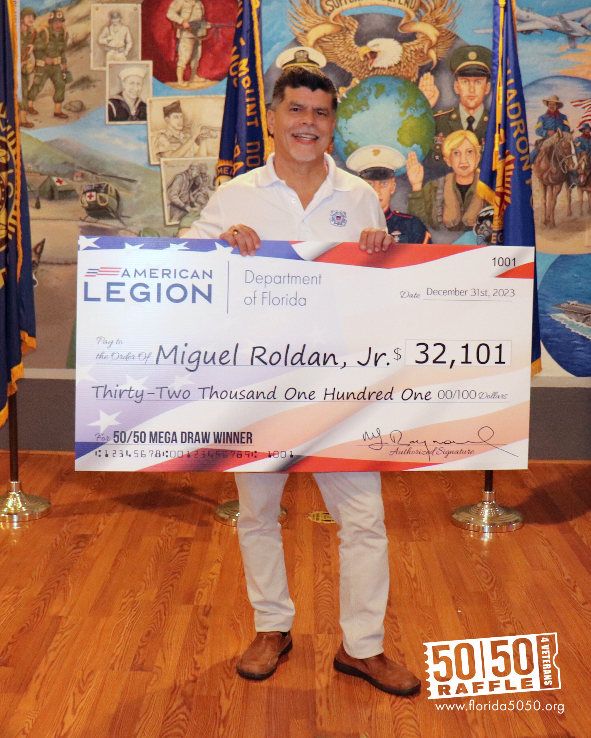 Recently, a grand prize of over thirty-two thousand dollars was awarded to Miguel Roldan, Jr. of American Legion Post 35 here in Mount Dora. Another thirty-two thousand will go to Florida Veterans and their families through The American Legion, Department of Florida.