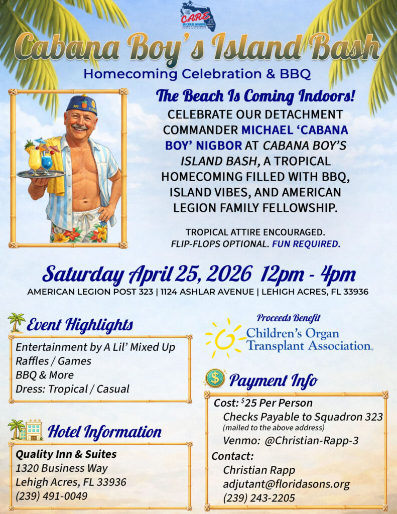Click here to add an event. All events are subject to approval. To change details or remove an event, please email changes to webmaster@floridalegion.org.