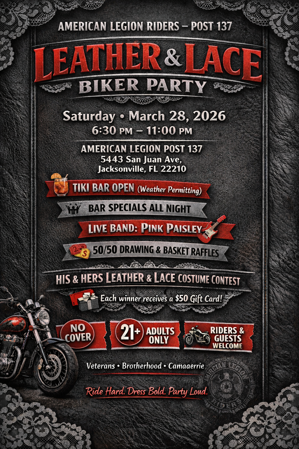 Click here to add an event. All events are subject to approval. To change details or remove an event, please email changes to webmaster@floridalegion.org.